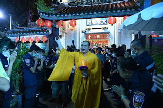 โดยทำพิธีเวียนธูปรอบศาลเจ้า 3 รอบ ตั้งจิตอธิษฐาน